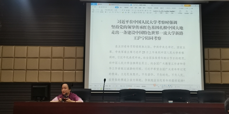 学生支部书记姚晓兰同志就《习近平总书记考察中国人民大学时重要讲话精神》、《习近平总书记在庆祝中国共产主义青年团成立100周年大会上的讲话》作了专题党课。
